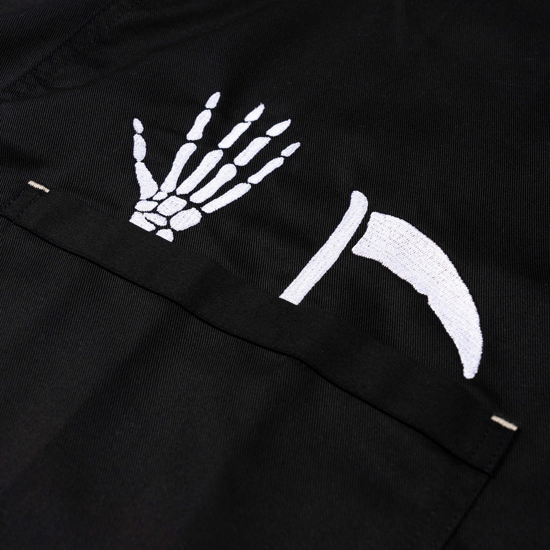 Bundle containing 1 Apron and 1 Pin. Apron is 2 pocket apron featuring custom embroidery. Made by Chef Works. Pin is Die struck metal pin with custom engraving.