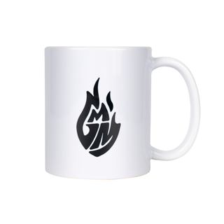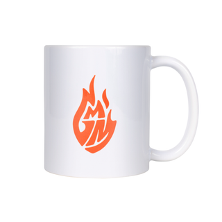 Angled view of Good Mythical Morning coaster 4pk for mugs. Fire design.